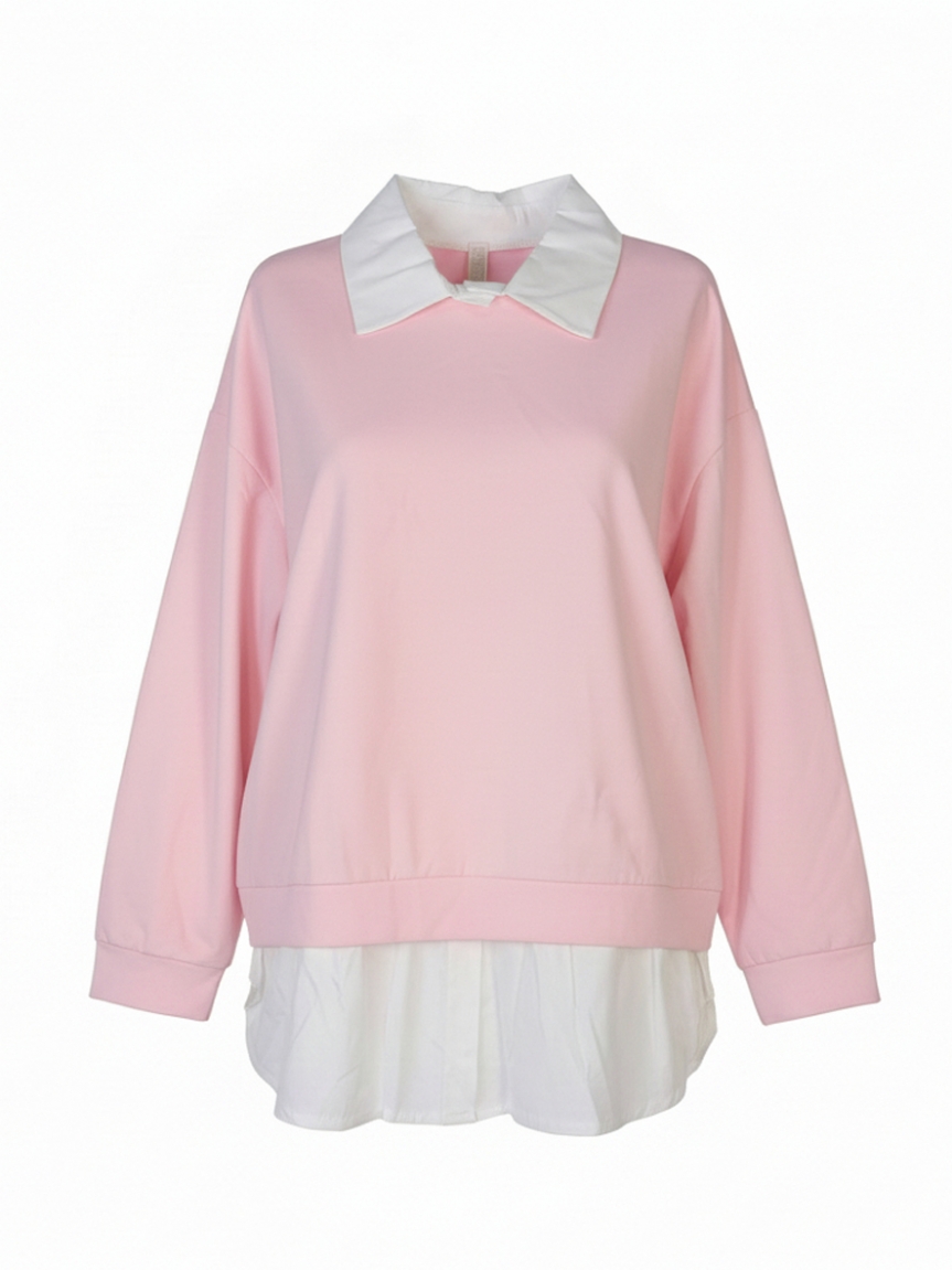 Μπλούζα βαμβακερή με ενσωματωμένο πουκάμισο - Ροζ