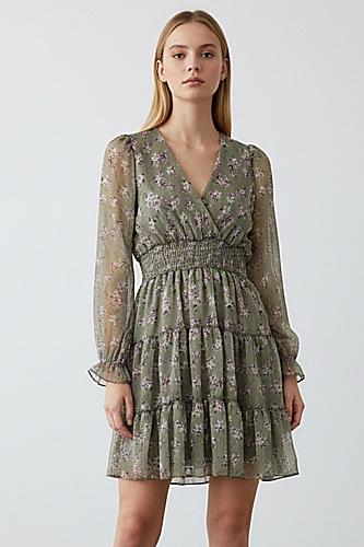 Ρομαντικό Floral φόρεμα - Χακί