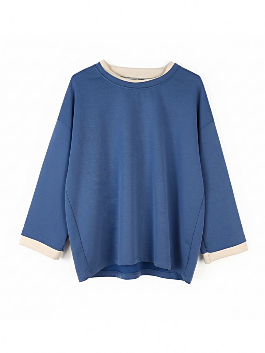 Minimal και άνετο σετ που συνδυάζει κομψότητα και καθημερινή ευκολία. Η μακρυμάνικη μπλούζα με στρογγυλή λαιμόκοψη και διακριτικές λευκές λεπτομέρειες προσφέρει χαλαρή εφαρμογή, ενώ το παντελόνι με ίσια γραμμή χαρίζει elegant σιλουέτα και άνεση όλη μέρα.