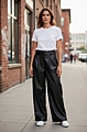 Παντελόνα σε φαρδιά γραμμή από λεπτή δερματίνη. Αέρινη και άνετη για όλες τις ώρες της ημέρας. Για εντυπωσιακές εμφανίσεις.