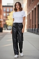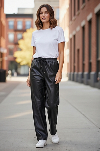 Παντελόνι από δερματίνη με τσέπες, λάστιχο στη μέση και κορδόνι.
