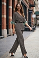 Εντυπωσιάστε με το μοναδικό σετ που συνδυάζει άνεση και κομψότητα. Η μπλούζα σε χαλαρή V γραμμή που αναδεικνύει τον λαιμό, αγκαλιάζει όμορφα το σώμα, ενώ η ιδιαίτερη λεπτομέρεια με φτερά στα μανίκια προσθέτει μία διακριτική fashion-forward πινελιά.