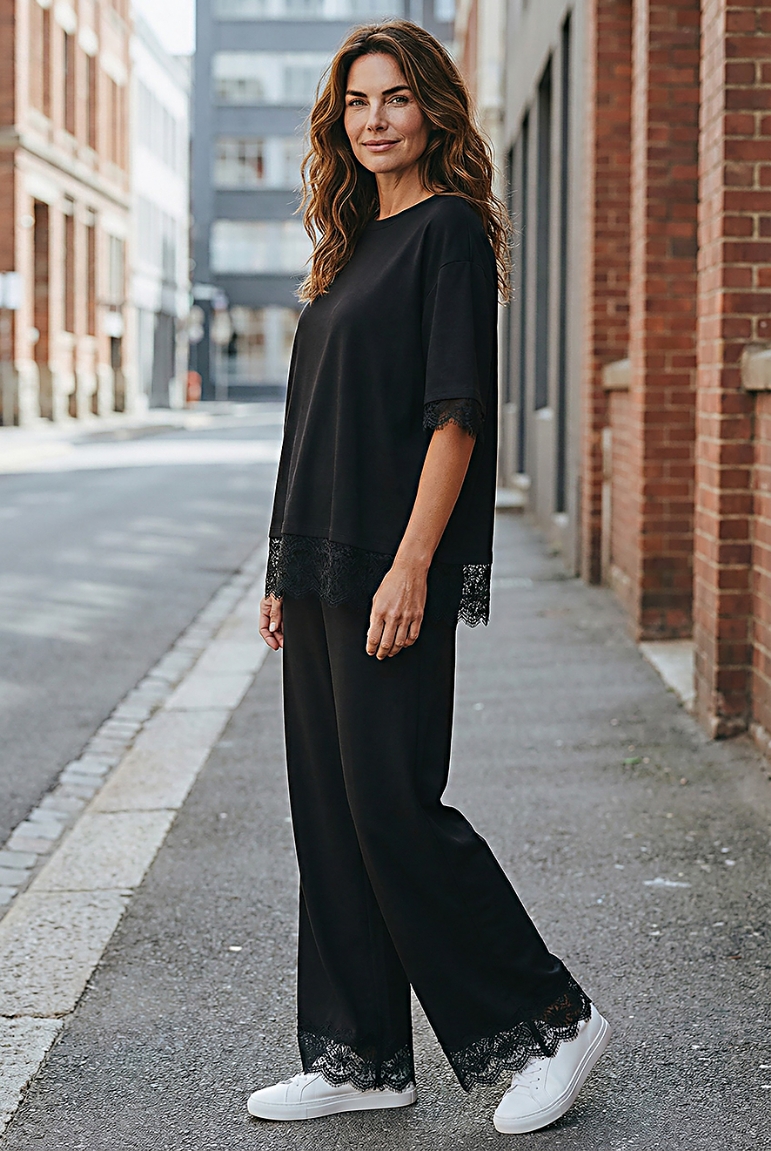 Κομψό σετ με δαντέλα - Μαύρο