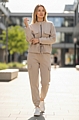 Το παντελόνι σε ίσια γραμμή και λάστιχο στο τελείωμα ολοκληρώνει το look, συνδυάζοντας άνεση και λειτουργικότητα.