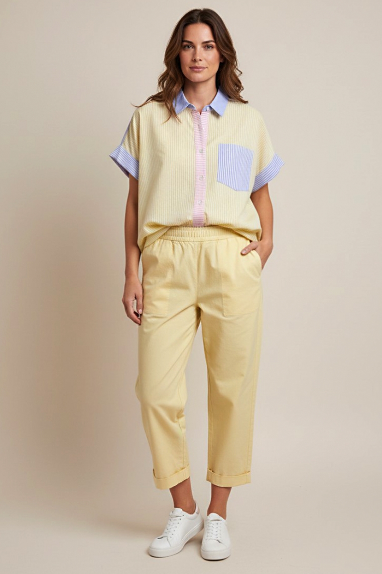 Ριγέ πουκάμισο με color block - Κίτρινο