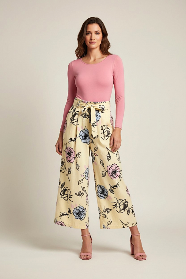 Ψηλόμεση ζιπ-κιλότ με φλοράλ σχέδιο - Κίτρινο