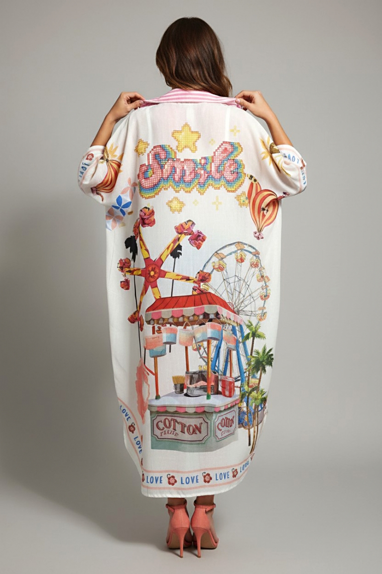 Διαθέτει κοντά μανίκια, γιακά και κουμπιά σε όλο το μήκος , ενώ τα πλαϊνά ανοίγματα προσφέρουν άνεση στην κίνηση. Το ιδιαίτερο πολύχρωμο print του χαρίζει παιχνιδιάρικο και καλοκαιρινό χαρακτήρα.