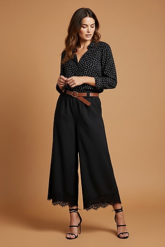 Άνετο παντελόνι με δαντέλα - Μαύρο