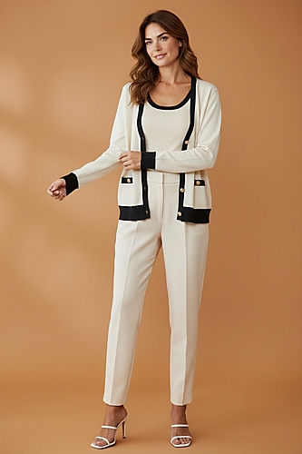 Κομψή και θηλυκή μπλούζα με ασορτί ζακέτα με υπέροχα χρυσά κουμπιά, ιδανική για κάθε στιγμή της ημέρας.